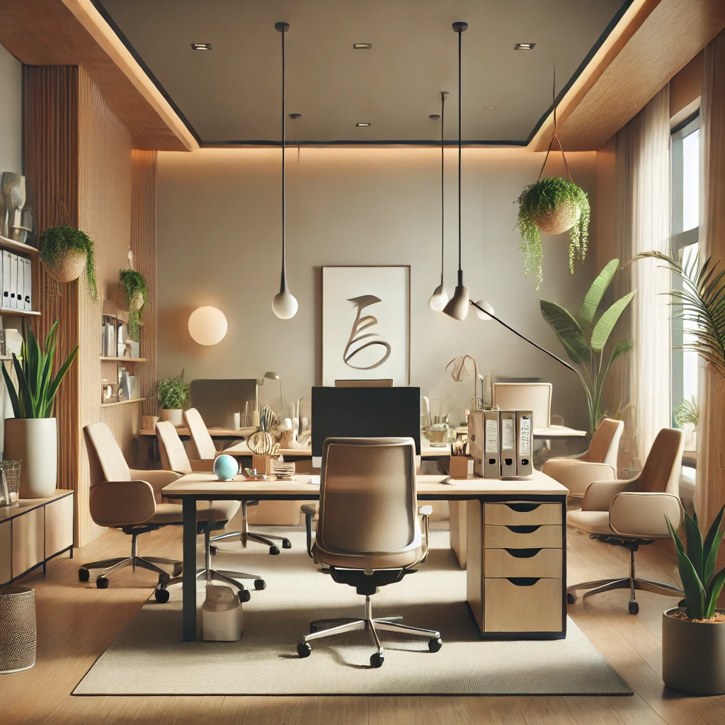 رنگها و نورپردازی نقش مهمی در ایجاد حس و حال فضای کار دارند. استفاده از رنگهای ملایم و نورپردازی مناسب میتواند به بهبود تمرکز و کاهش خستگی چشم کمک کند.